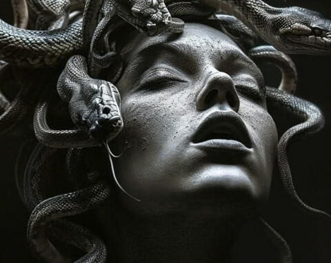The gods have long since faded, yet their punishment lingers—etched into her bones, coiled beneath her skin.&. In the neon glow of the city, she sings, her voice a siren’s call. Men come to her, drawn by something they cannot name, something ancient, something fatal. They fall in love. They fall to ruin. Some vanish. Some are buried. She weeps for them, draped in black silk and borrowed diamonds, a grieving widow to men who never truly knew her.&. She learned long ago that the world does not show mercy to women like her. So she stopped begging for it. She takes. She survives. She seduces. She destroys. And when they look too closely, when they see past the illusion to the curse beneath— She turns them to stone.